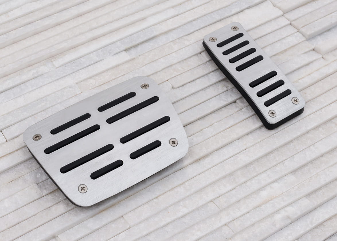 Komplet nakładek zaprojektowany został tak, aby zwiększyć komfort kierowcy podczas prowadzenia samochodu. Zintegrowane, gumowe elementy zapobiegają ślizganiu się podeszwy, co umożliwia pewniejsze operowanie pedałami podczas jazdy. Zastosowanie nakładek poprawia kontrolę nad autem w ekstremalnych sytuacjach, dzięki czemu mogą one mieć niebagatelny wpływ na bezpieczeństwo kierowcy i pasażerów. Nakładki wykonane zostały z materiałów wysokiej jakości, dzięki czemu są nie tylko trwałe, ale także prezentują się znakomicie przez długi czas. Dzięki zastosowaniu szczotkowanego aluminium, zestaw wspaniale komponuje się z innymi elementami wykończenia, podkreślając tym samym elegancki, dynamiczny charakter samochodu. Nakładki montuje się przy pomocy dołączonych wkrętów na fabryczne pedały. Zalecamy montaż profesjonalny. Zapraszamy do zakupu!