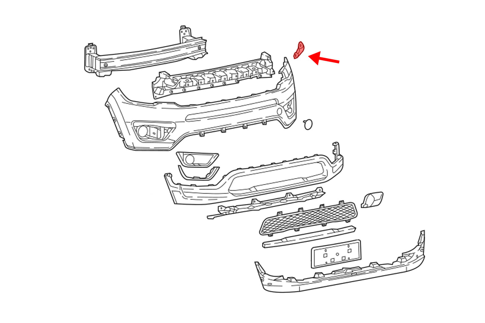 Element mocujący poszycie zderzaka przedniego / ślizg prawy, dla JEEP COMPASS II (MP) 2017+.