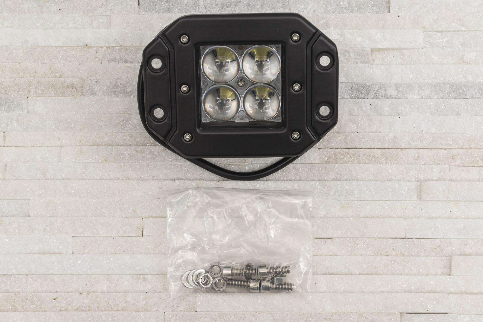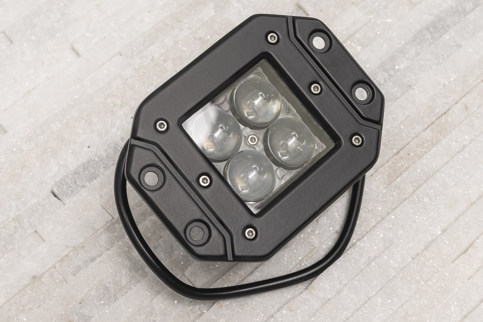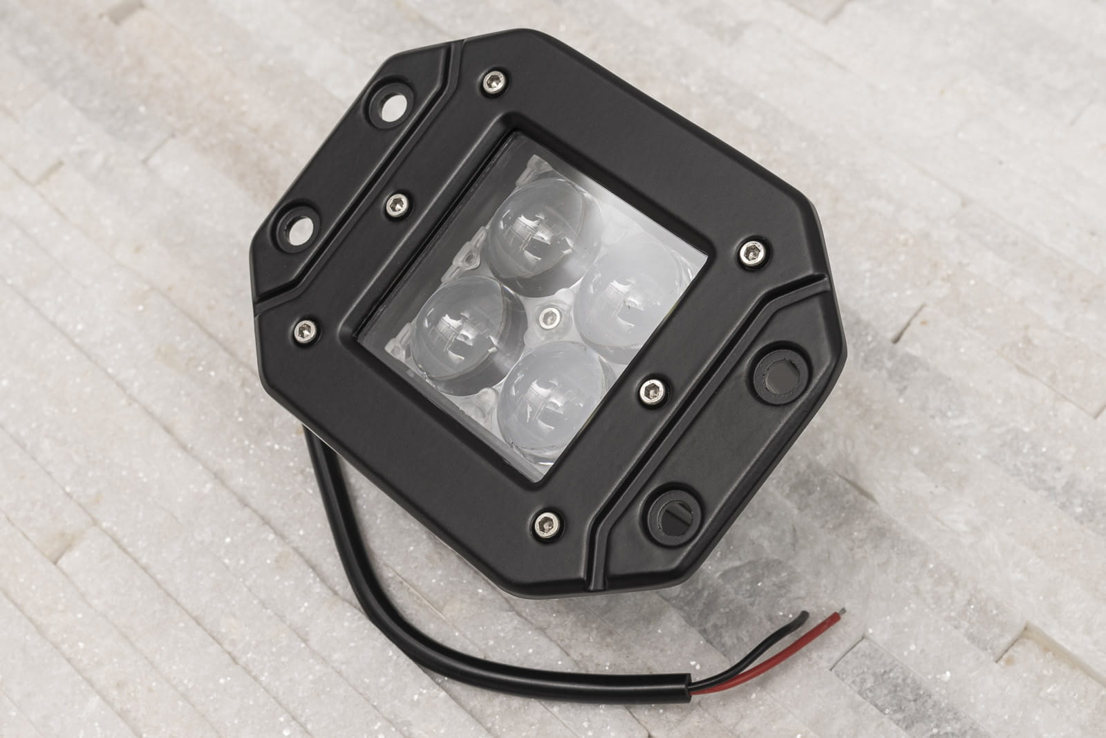 | Lampa robocza, rozproszone światło robocze montowane w zderzak, o mocy 16W - 4 x 4W (4 diody LED) co odpowiada 160W) 12-24V. W konstrukcji lampy wykorzystano 4 diody amerykańskiego producenta CREE który dzięki zastosowaniu najnowszych technologii wytwarza obecnie najwydajniejsze diody na rynku. Diody chronione są solidną szybą czołową wykonaną z poliwęglanu, dzięki czemu oświetlenie jest całkowicie szczelne, niewrażliwe na zachlapania czy zakurzenie (certyfikat IP65). Lampa przeznaczona jest montażu przy użyciu dołączonego uchwytu. Istnieje możliwość montażu w otworze 83x75 mm, lampa licuje się wtedy ze zderzakiem. Standardowo montowana jest na 4 śruby od czoła. Dzięki zastosowaniu technologii LED, lampy nie tylko zużywają mniej energii, ale także znakomicie się prezentują, wprowadzając do stylizacji samochodu nowoczesny akcent. Światła LED emitują silne białe światło o temperaturze barwowej 6000K i mocy 1500 lumenów, dzięki któremu samochód jest lepiej widoczny, co ma wpływ na zwiększenie bezpieczeństwa na drodze. W komplecie znajdują się: lampa z wyprowadzonym kablem i śruby montażowe. Parametry: