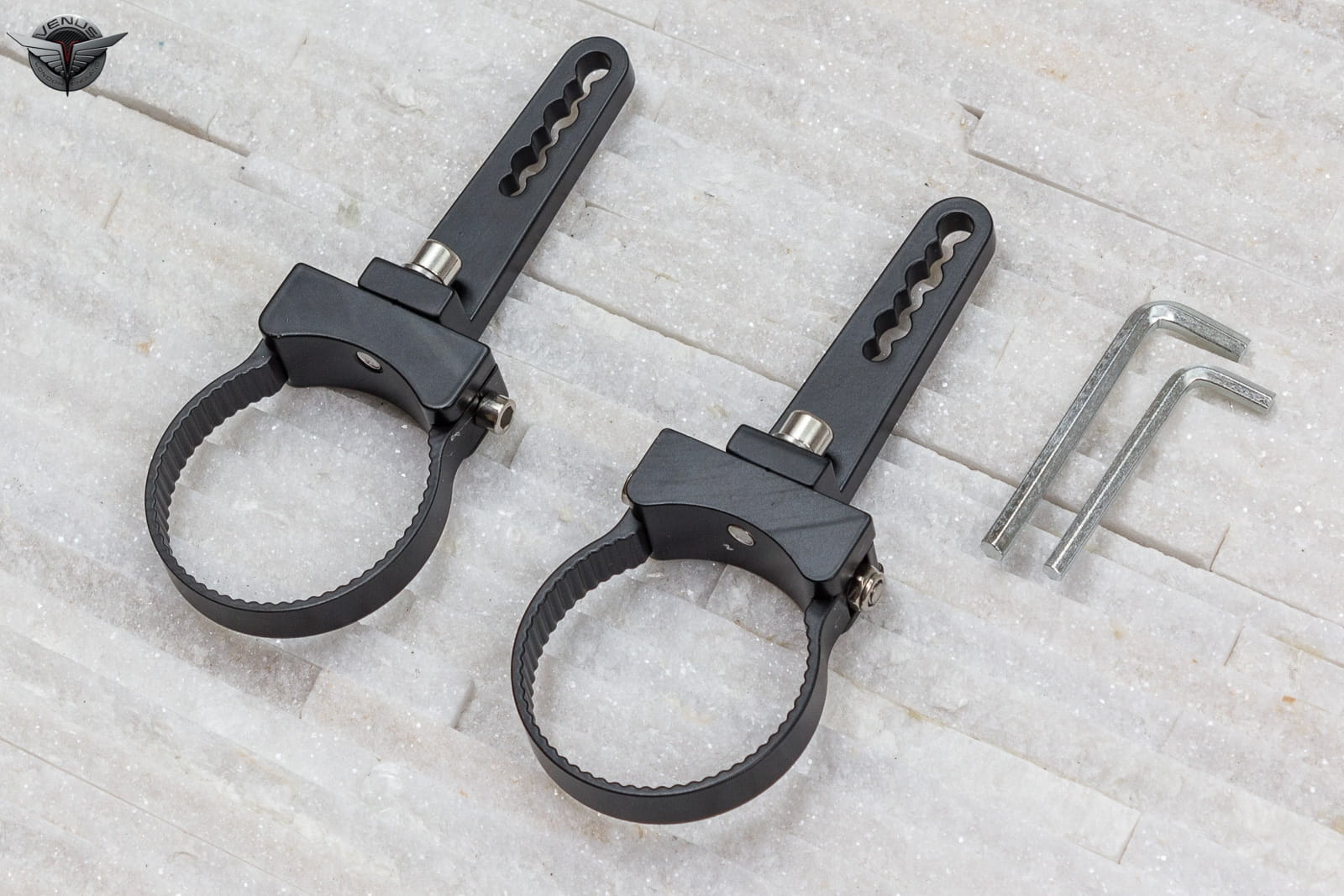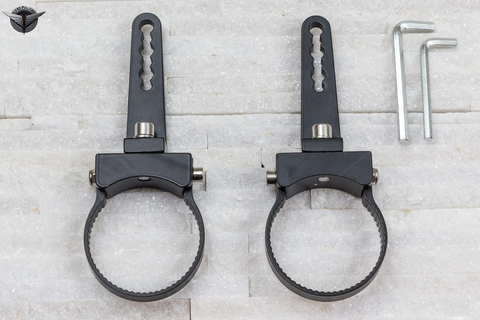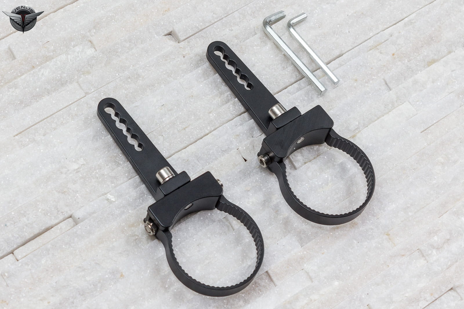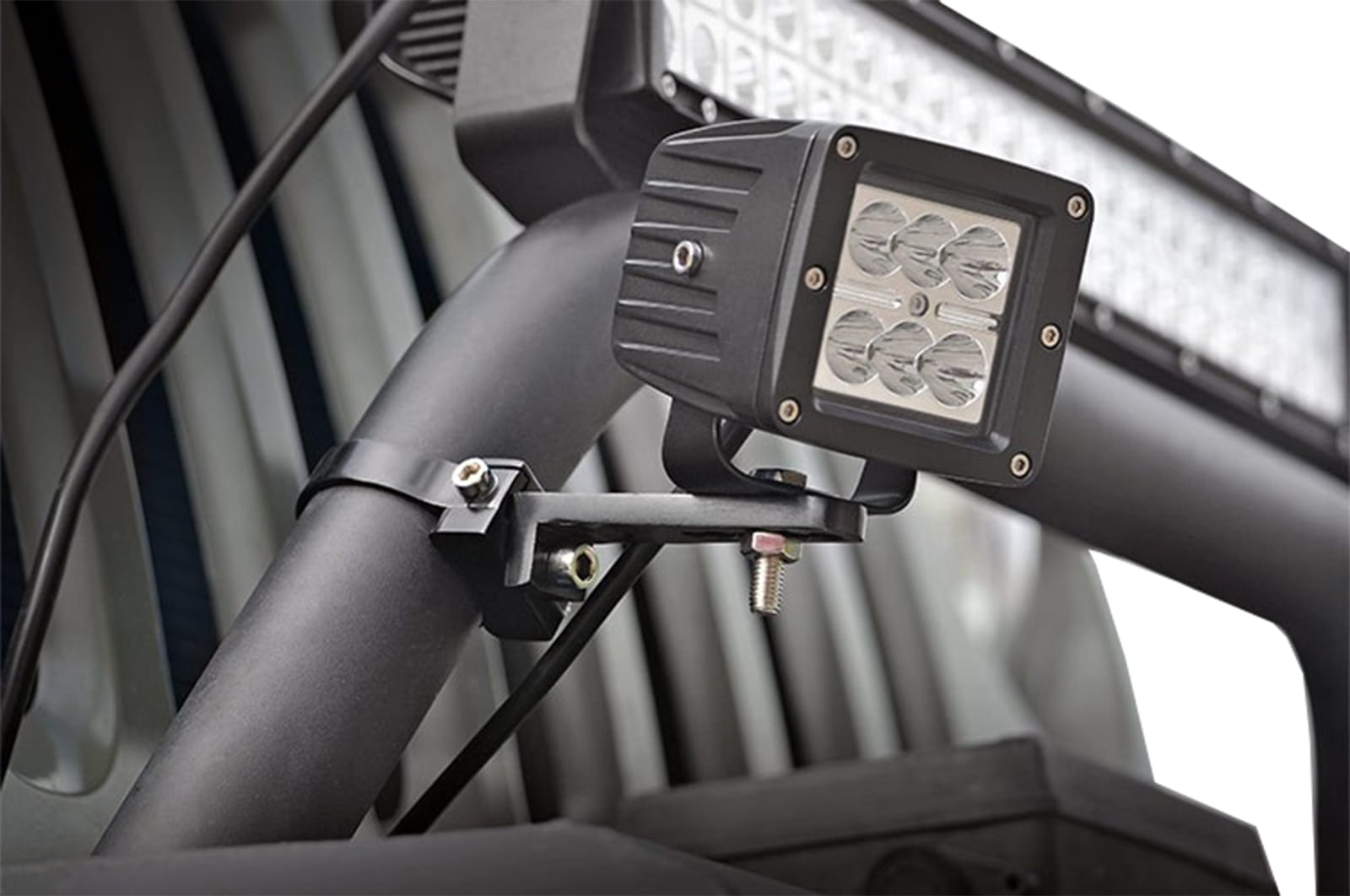 Obejmy dodatkowych świateł LED o średnicy 2,5 cala (6,35 cm). Pozwala na montaż dodatkowego oświetlenia na samochodzie. Uchwyty wykonane z wytrzymałej stali anodowanej, malowanej proszkowo w czarnym kolorze.