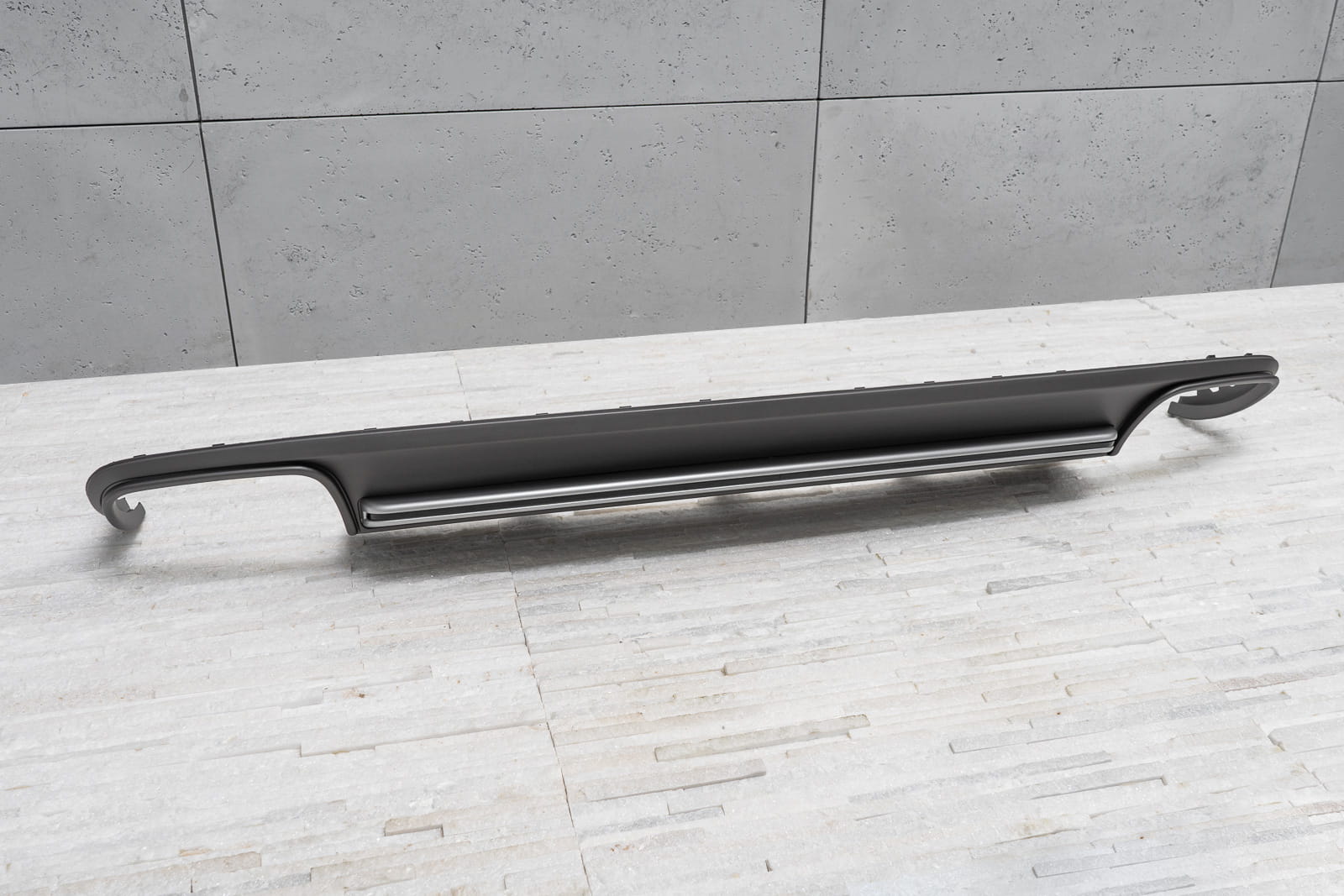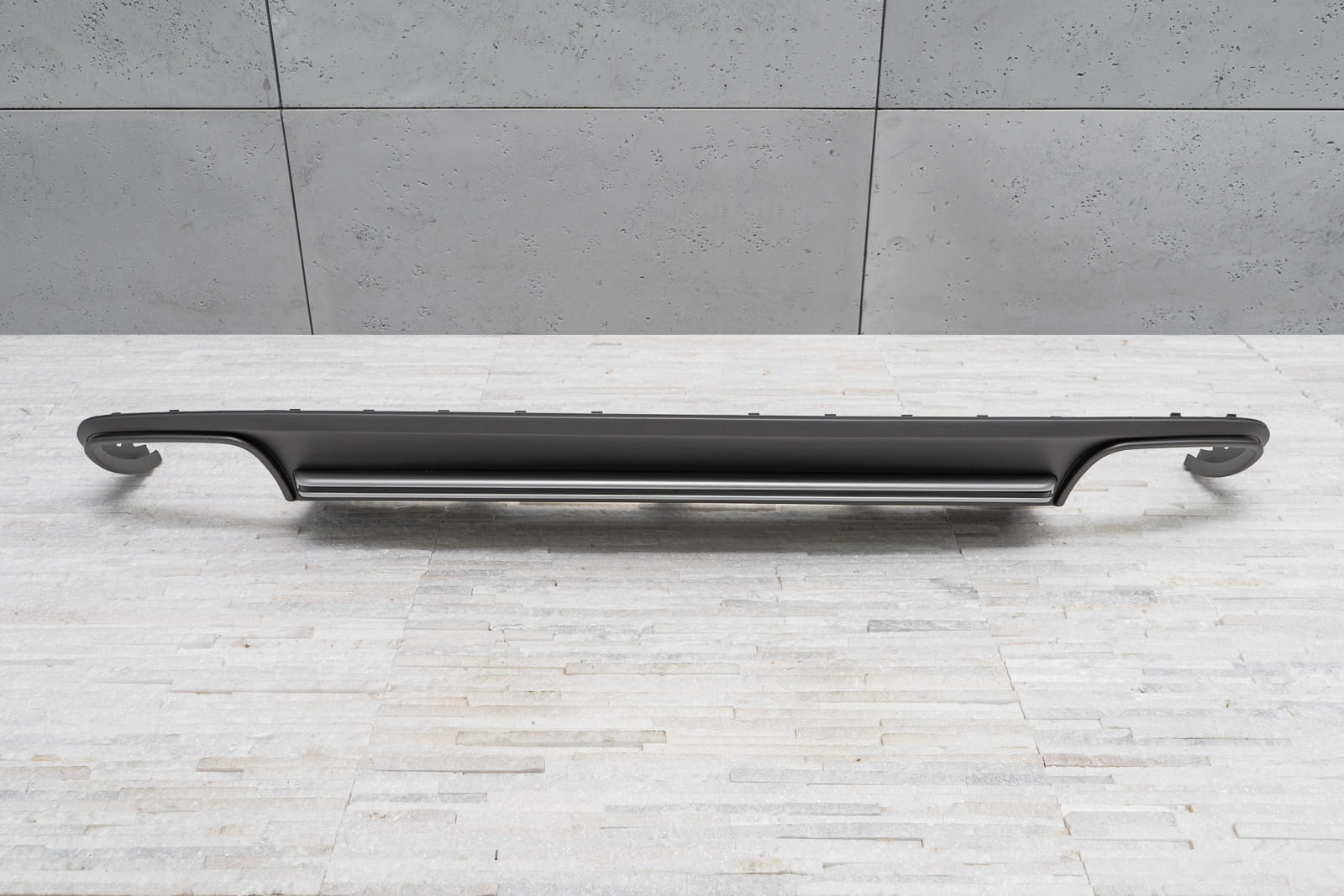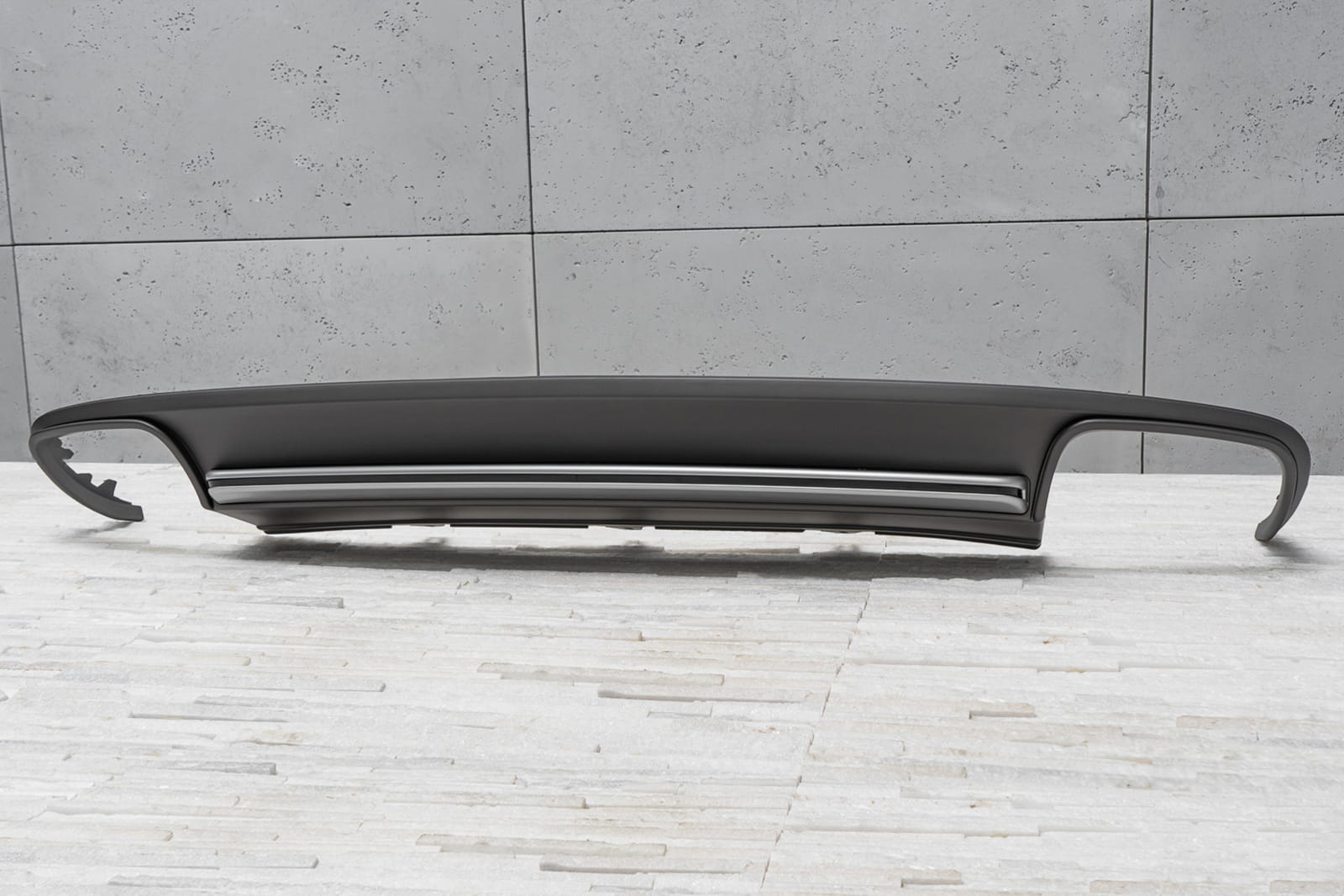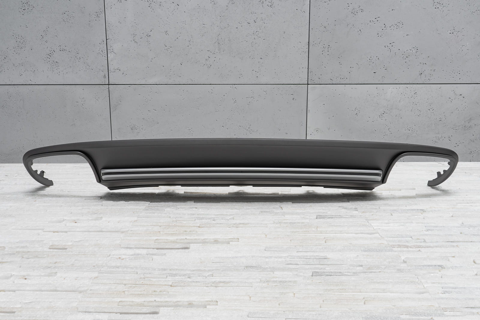 Dyfuzor tylnego zderzaka dla modelu AUDI A4 (B8) 2011-2015 (wersja po faceliftingu). Nie pasuje do wersji wyposażeniowych S / S-LINE / RS. Charakterystyczny, podwójny wydech pozwala osiągnąć efekt stylizacji Audi A4 na wersje S4.
