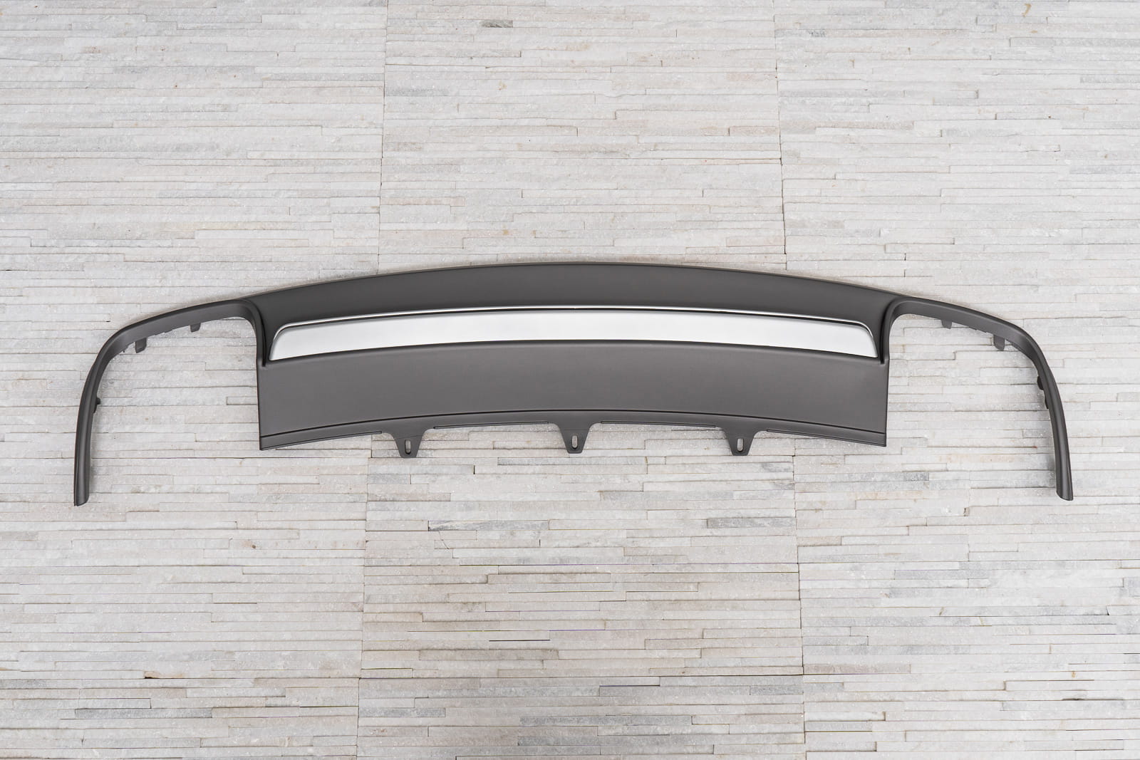Produkt wykonany został z wysokiej jakości tworzywa motoryzacyjnego ABS w kolorze antracytu. Prawdziwą ozdobą dyfuzora jest srebna listwa z czarnym paskiem która przyciąga wzrok oraz podkreśla wydech naszego auta.