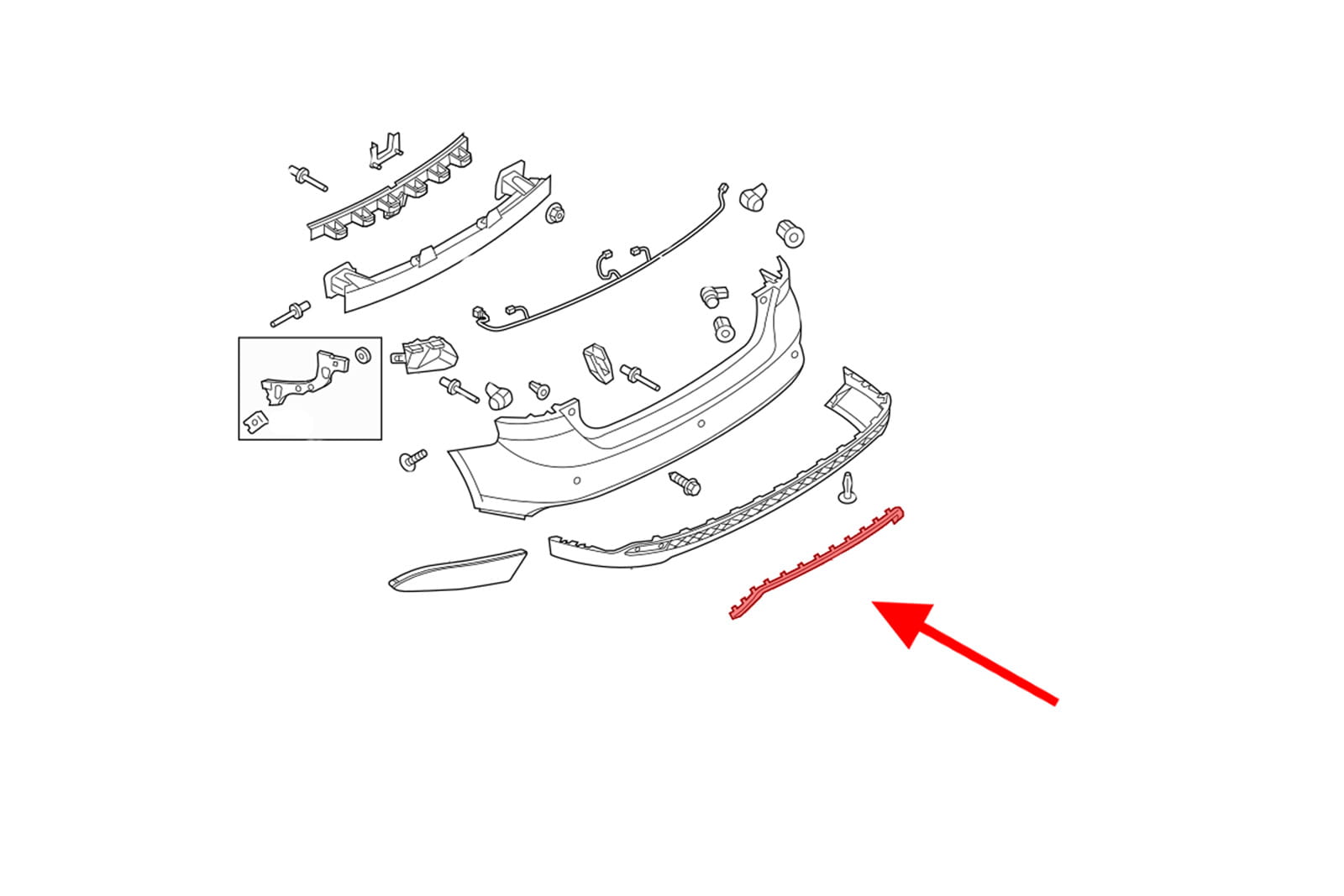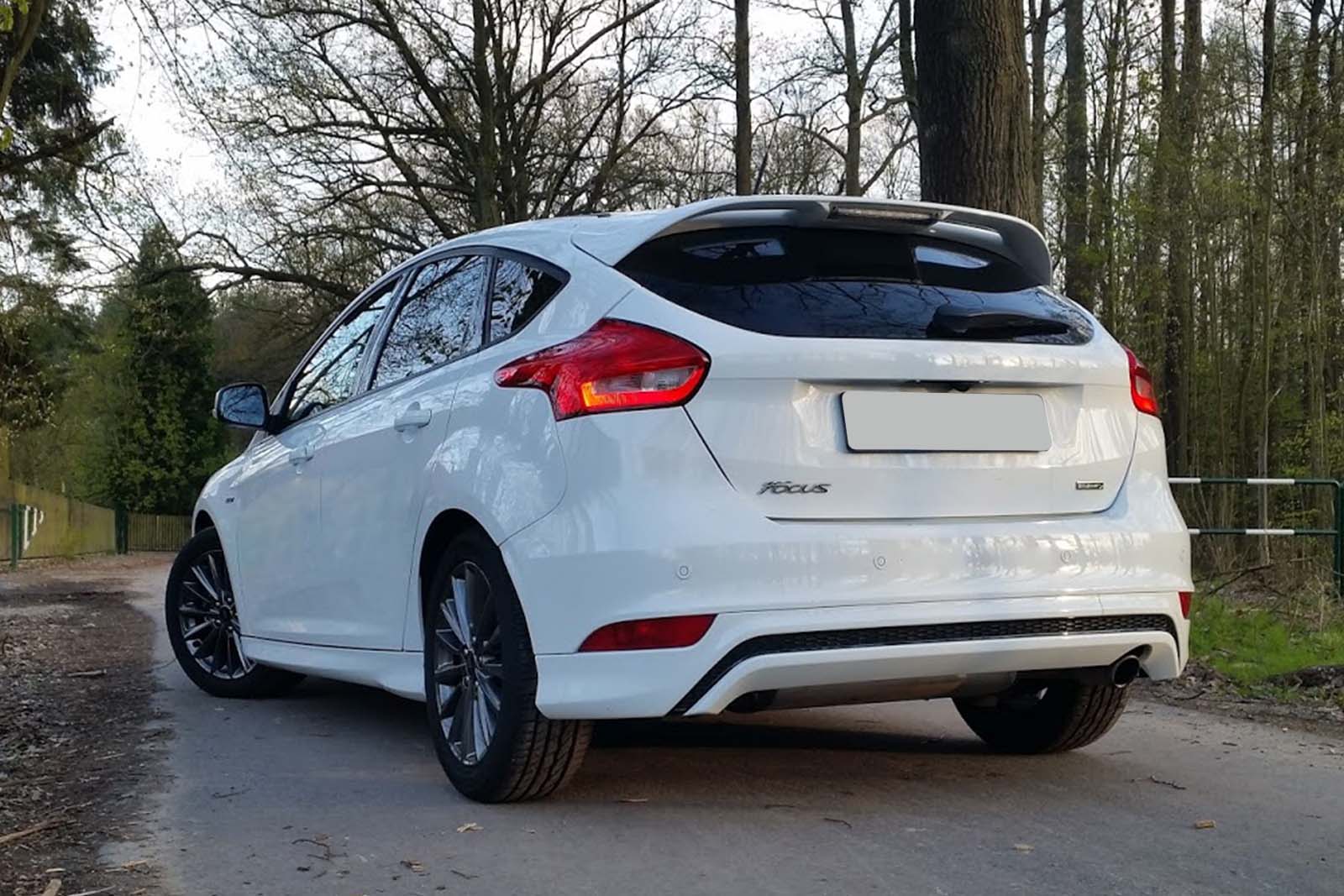 Dolna listwa tylnego zderzaka, dyfuzora, dla FORD FOCUS MK3 III 2014-2018 (wersja po faceliftingu). Listwa pasuję tylko do modeli wyposażonych w pakiet stylistyczny ST-LINE.