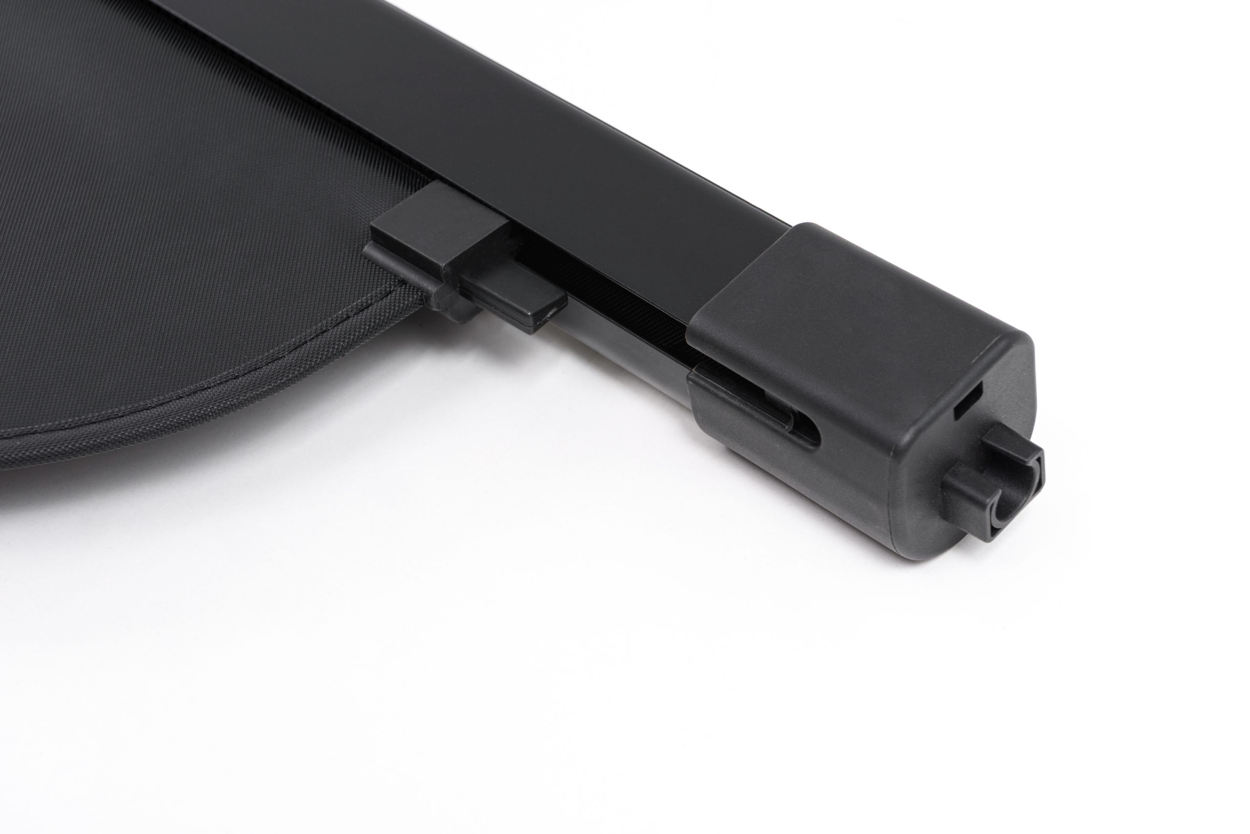 Zastosowanie składanej rolety pozwala chronić przestrzeń bagażową przed nadmiernym nasłonecznieniem. Osłania ona także zawartość bagażnika, zmniejszając tym samym ryzyko kradzieży znajdujących się wewnątrz przedmiotów. Elegancki czarny kolor oraz estetyka wykonania sprawiają, że roleta doskonale współgra ze stylem samochodu. Poszycie zasłony wykonane zostało z materiału odpornego na uszkodzenia oraz odbarwienia spowodowane nasłonecznieniem i zmianami temperatur, dzięki czemu produkt doskonale prezentuje się przez długi czas.