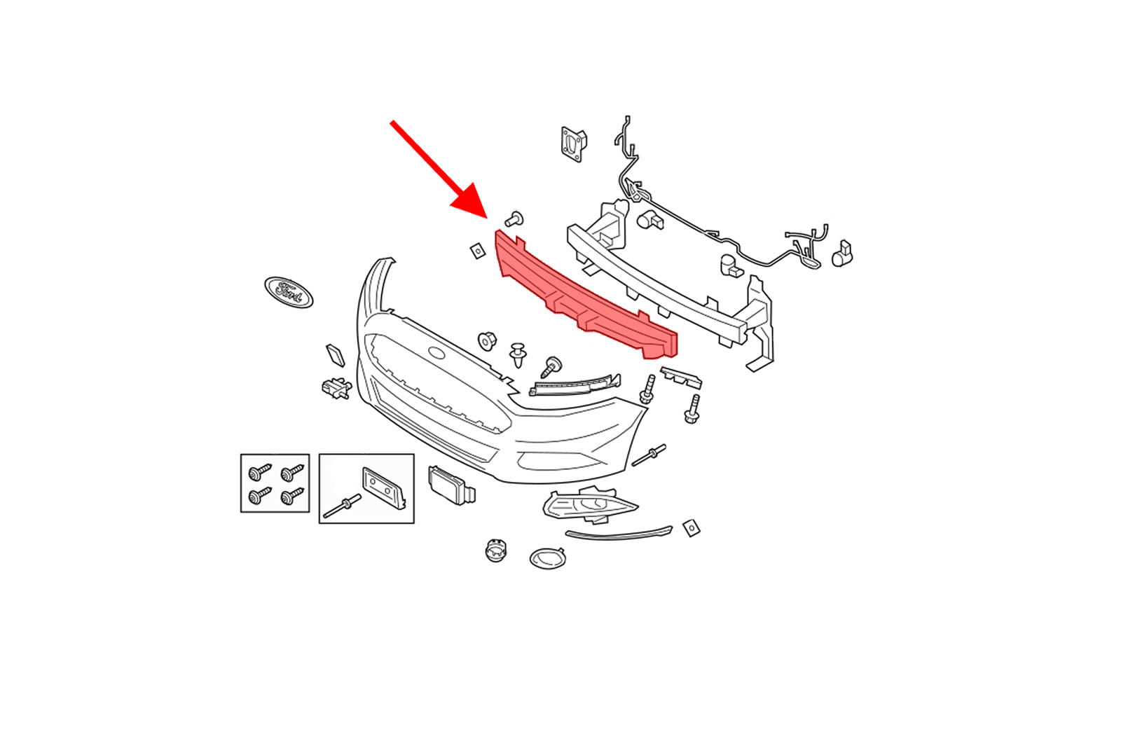 Absorber tylnego zderzaka, dla FORD MONDEO MK5 V 2014-2019 (wersja Sedan przed faceliftingiem). Nie pasuje do wersji wyposażeniowej Vignale.