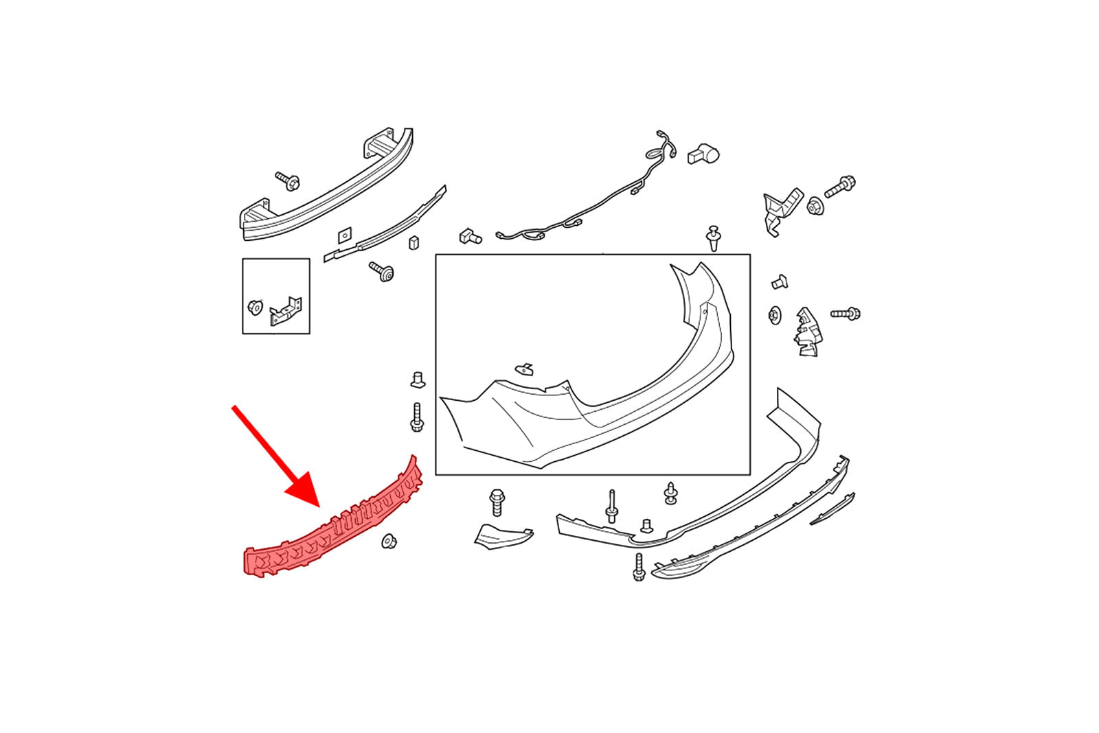 Absorber tylnego zderzaka, dla FORD MONDEO MK5 V 2014-2019 (wersja Sedan przed faceliftingiem). Nie pasuje do wersji wyposażeniowej Vignale. Pasuje do FORD FUSION MK2 II 2012-2018 (w wersji Sedan).