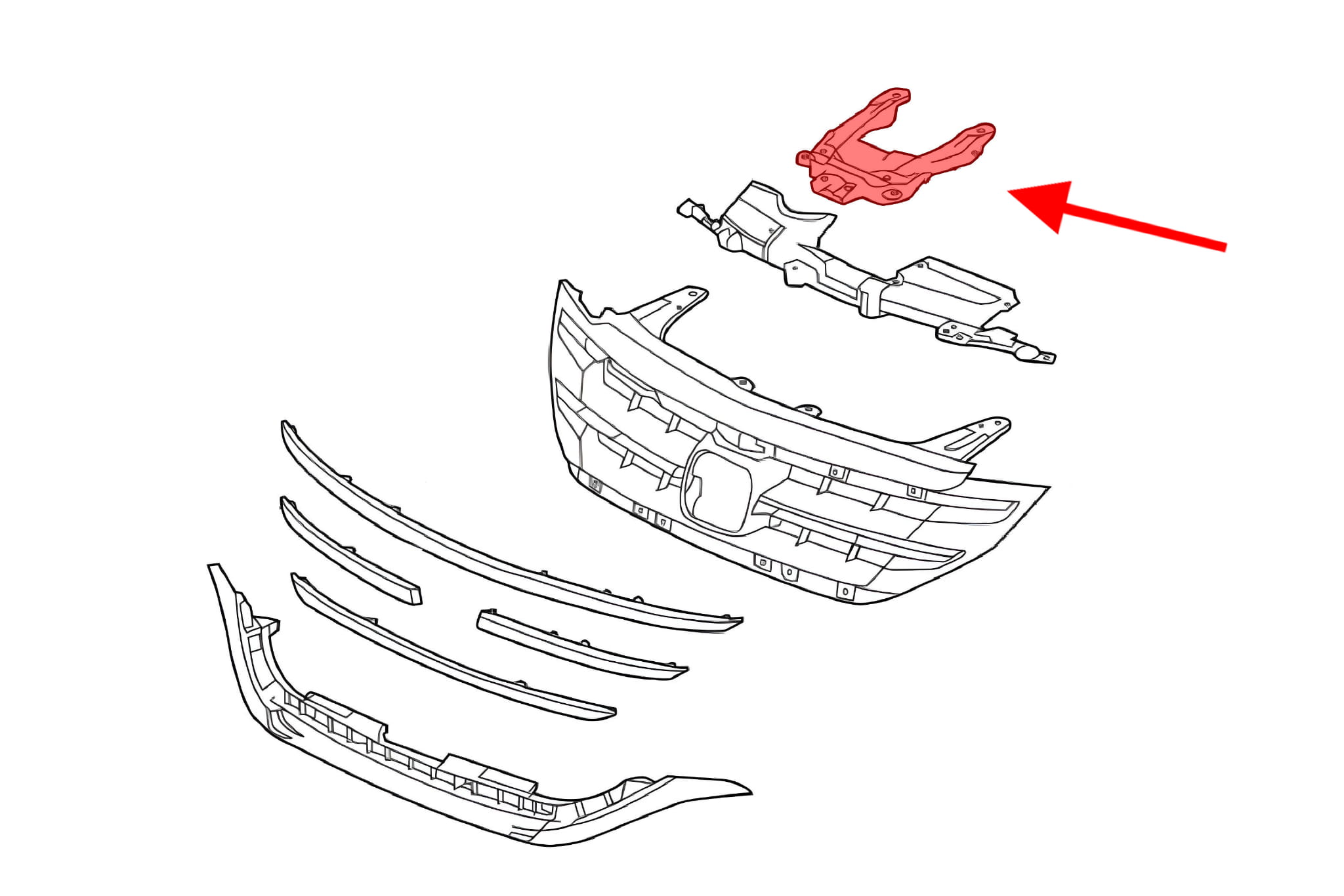 Mocowanie atrapy chłodnicy, wspornik, dla HONDA CR-V IV 2012-2015 (wersja przed faceliftingiem).