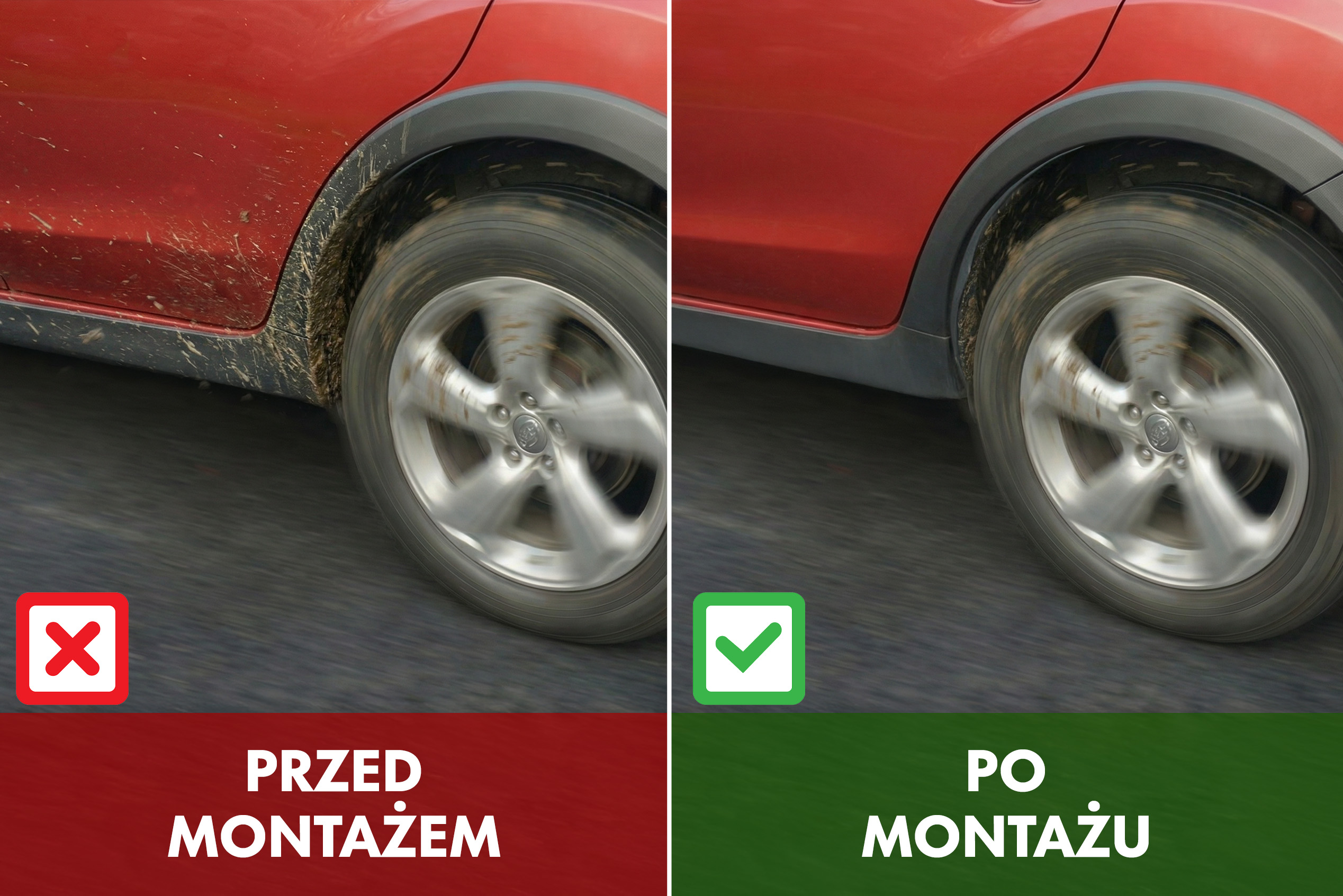 W zestawie znajduje się komplet dwóch chlapaczy. Produkt montuje się w miejsca fabryczne, bez dodatkowych modyfikacji. Zalecamy montaż w profesjonalnym warsztacie.