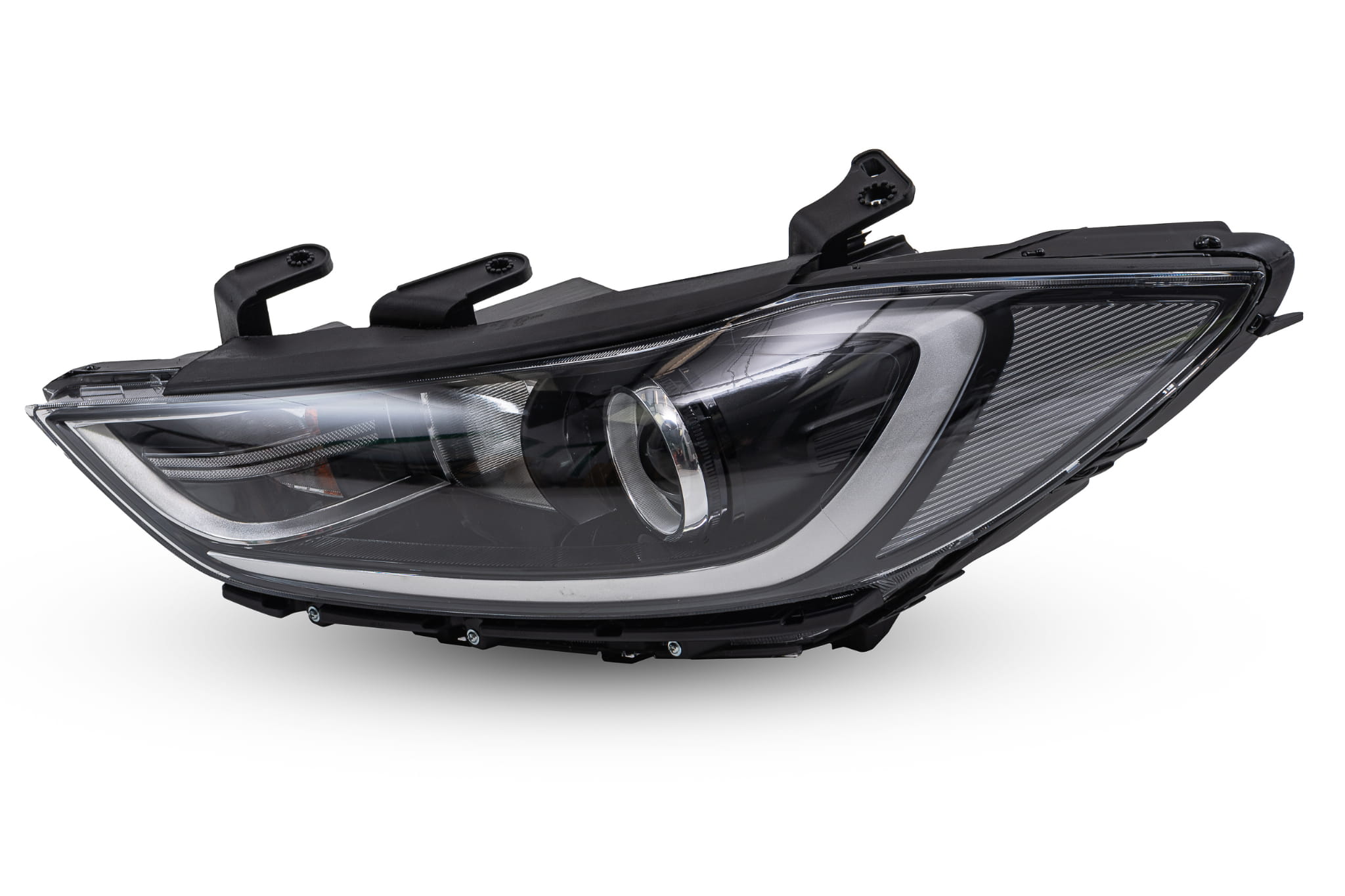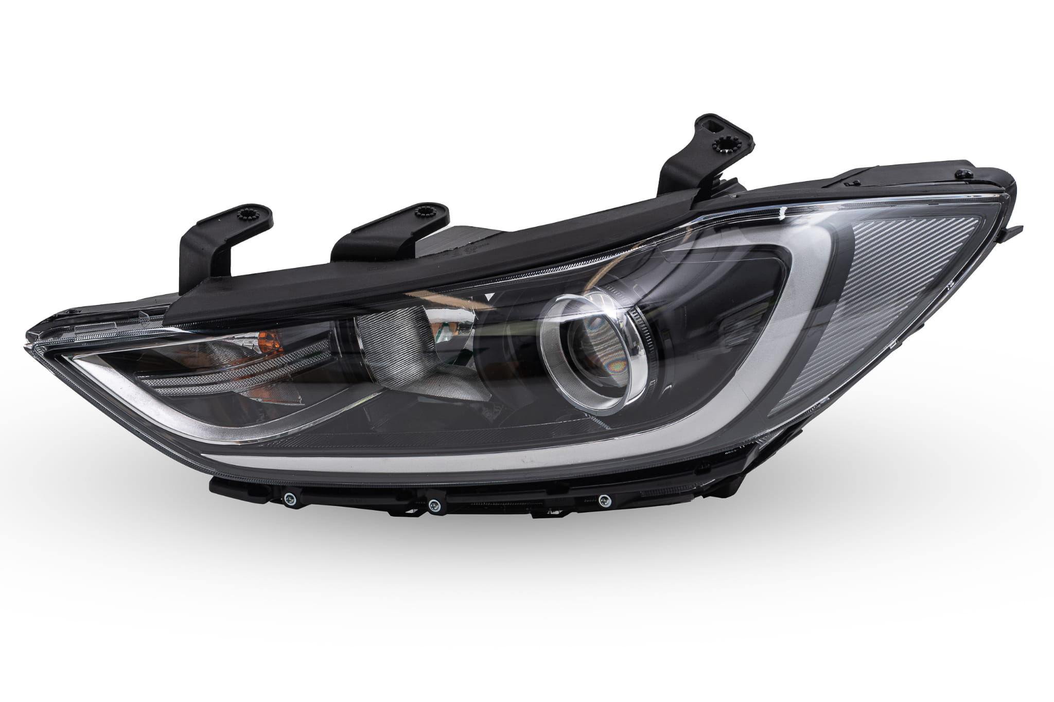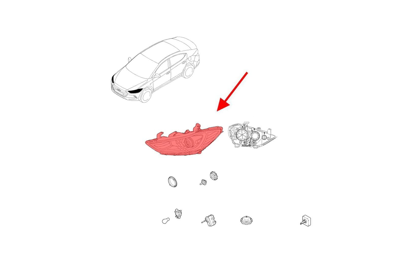 Lampa przednia, lewa (bez LED), dla HYUNDAI ELANTRA VI AD 2015-2018 (wersja przed faceliftingiem). W zestawie znajduje się żarówka PY21W (kierunkowskaz) i W5W (światło postojowe).