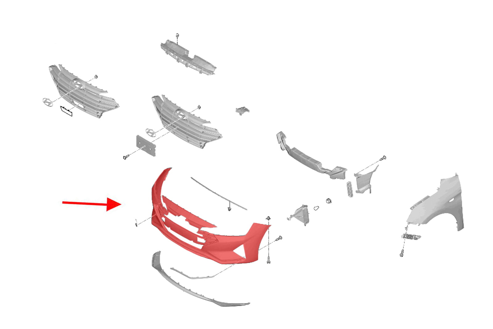 Zderzak przedni z otworami pod czujniki parkowania PDC (x2), dla HYUNDAI ELANTRA VI (AD) 2018-2020 (wersja po faceliftingu).