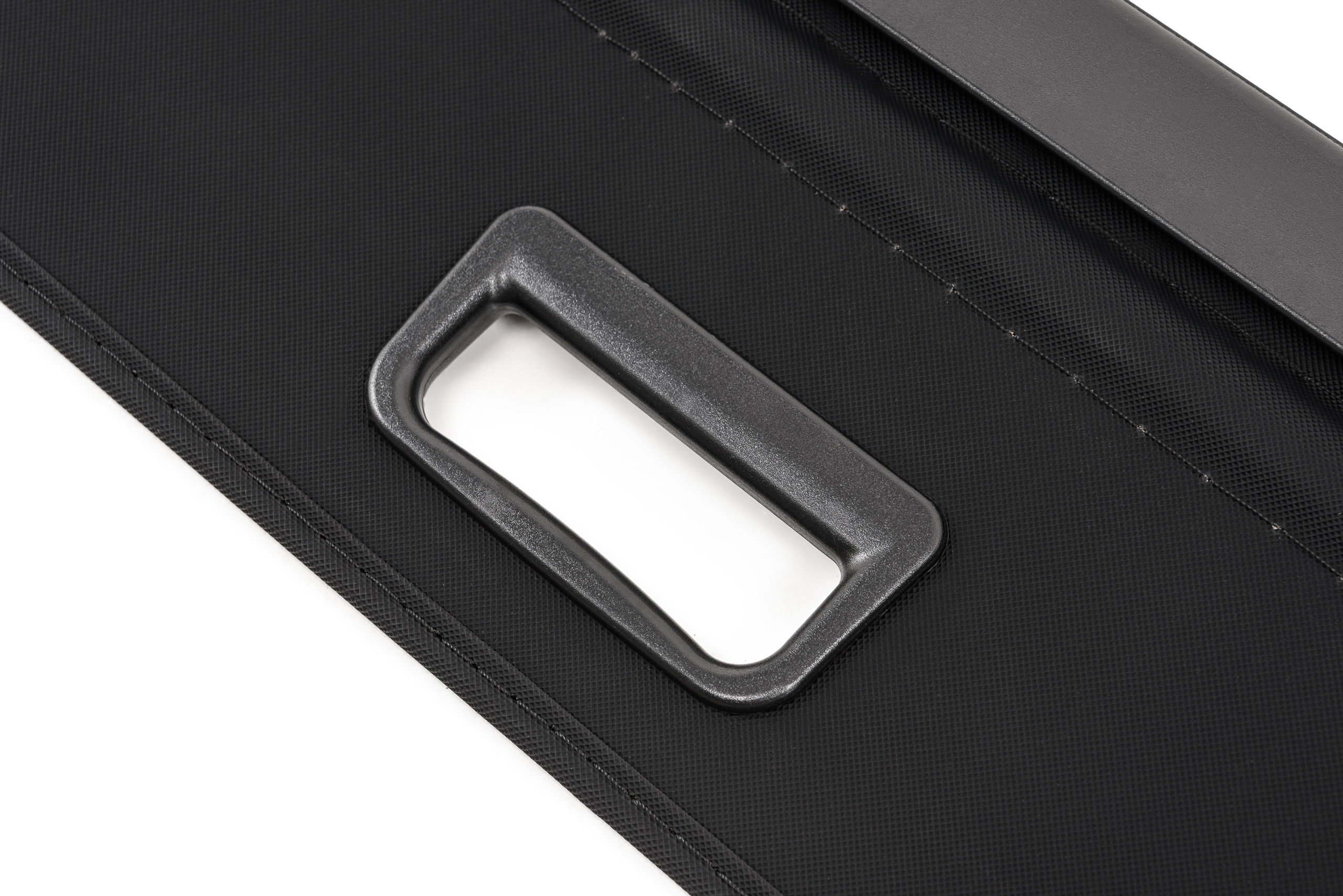 Zastosowanie składanej rolety pozwala chronić przestrzeń bagażową przed nadmiernym nasłonecznieniem. Osłania ona także zawartość bagażnika, zmniejszając tym samym ryzyko kradzieży znajdujących się wewnątrz przedmiotów. Elegancki czarny kolor oraz estetyka wykonania sprawiają, że roleta doskonale współgra ze stylem samochodu. Poszycie zasłony wykonane zostało z materiału odpornego na uszkodzenia oraz odbarwienia spowodowane nasłonecznieniem i zmianami temperatur, dzięki czemu produkt doskonale prezentuje się przez długi czas.