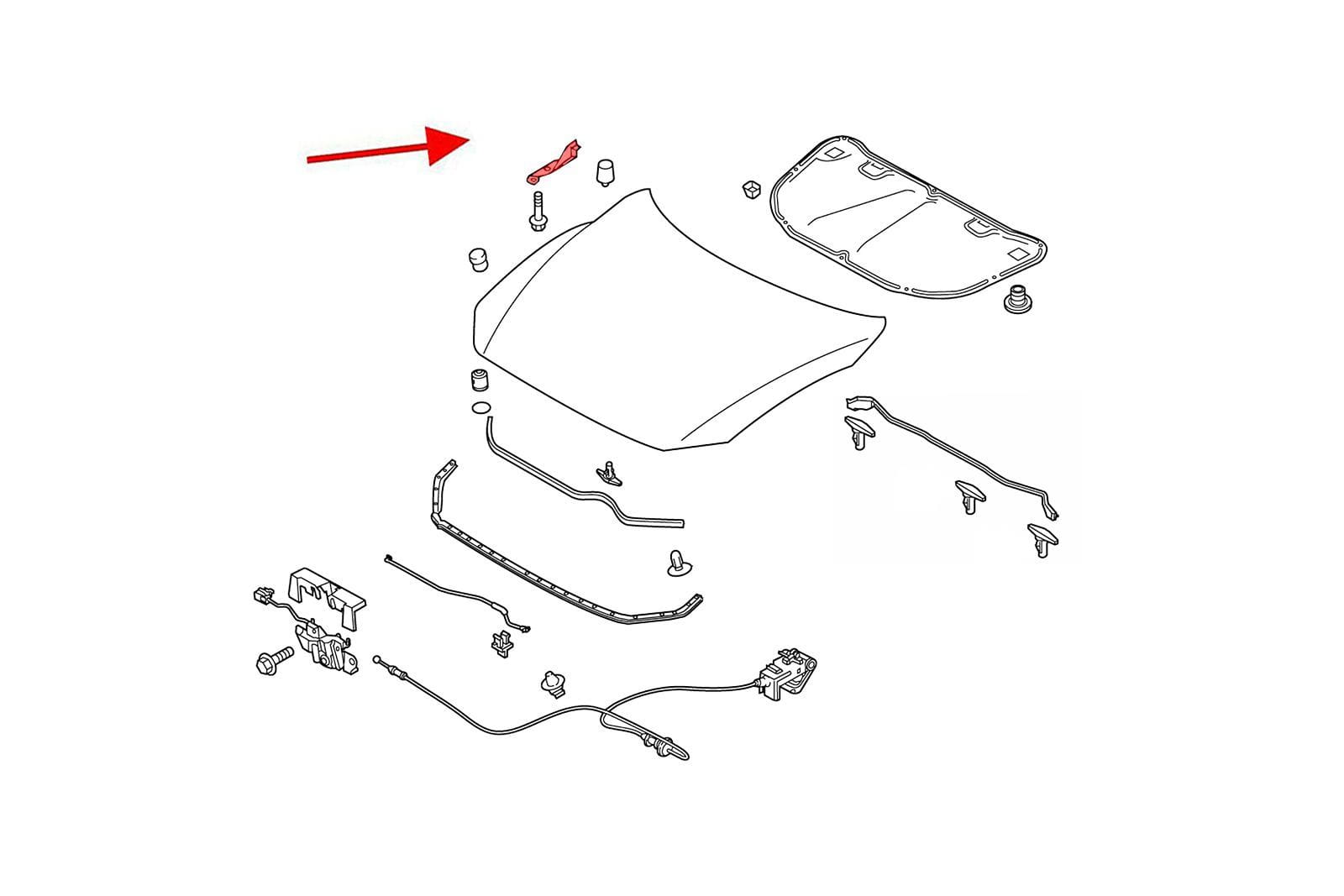 Zawias pokrywy maski, prawy, dla MAZDA 6 III (GJ) 2016-2018 (wersja po pierwszym faceliftingu).