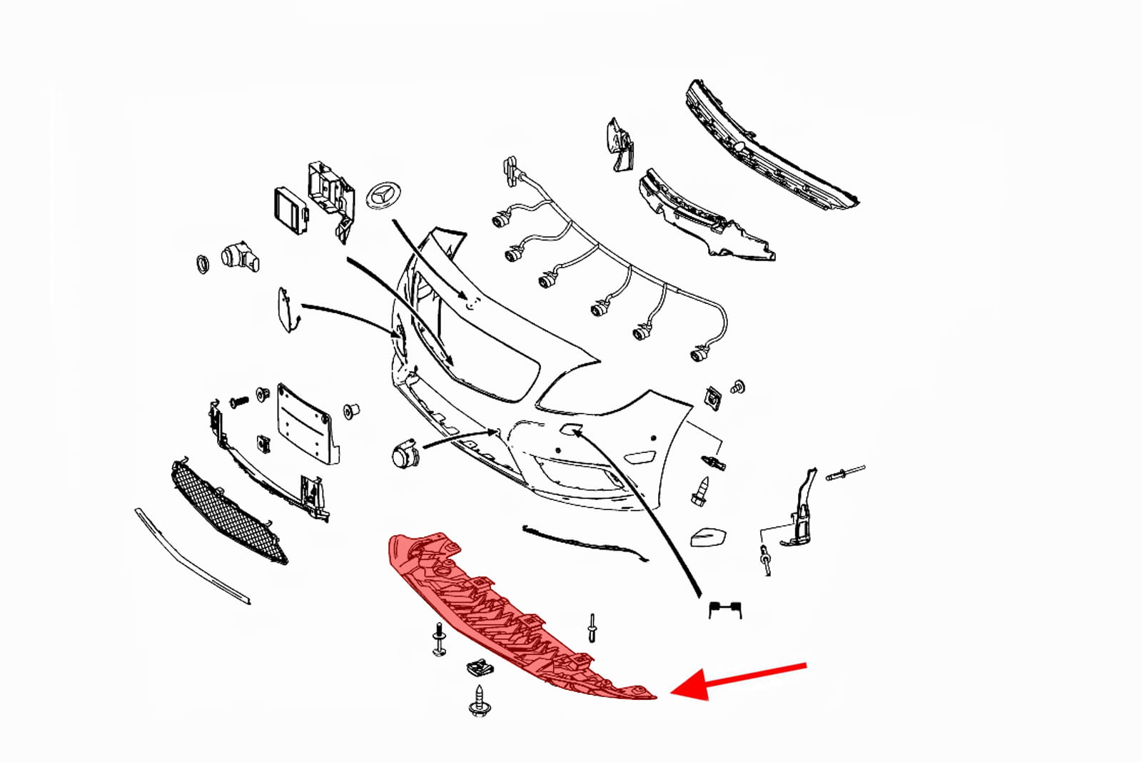 Osłona przedniego zderzaka, płyta pod zderzak z kompletem śrub mocujących do MERCEDES CLA (C117/W117) 2017-2019 (wersja po faceliftingu).