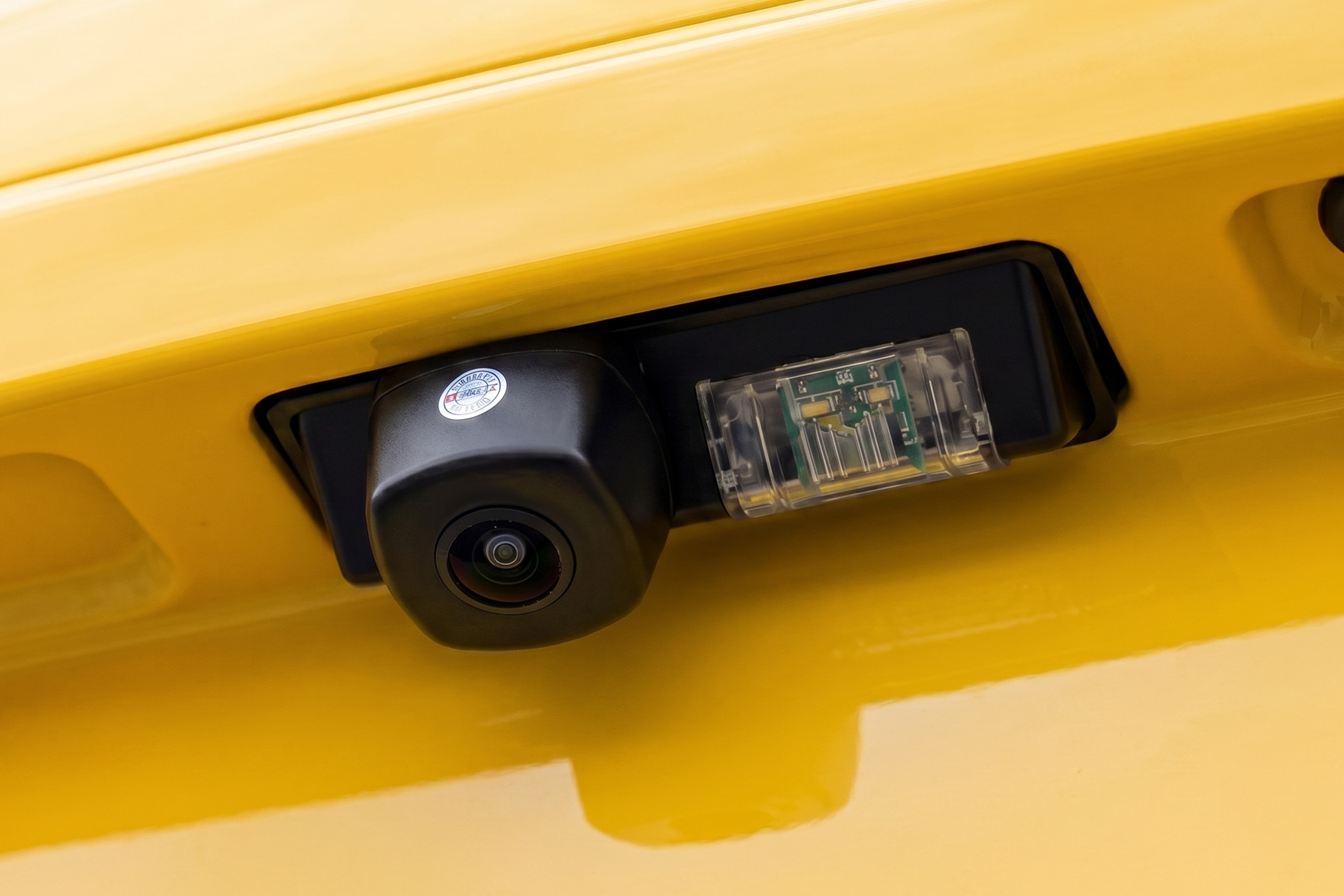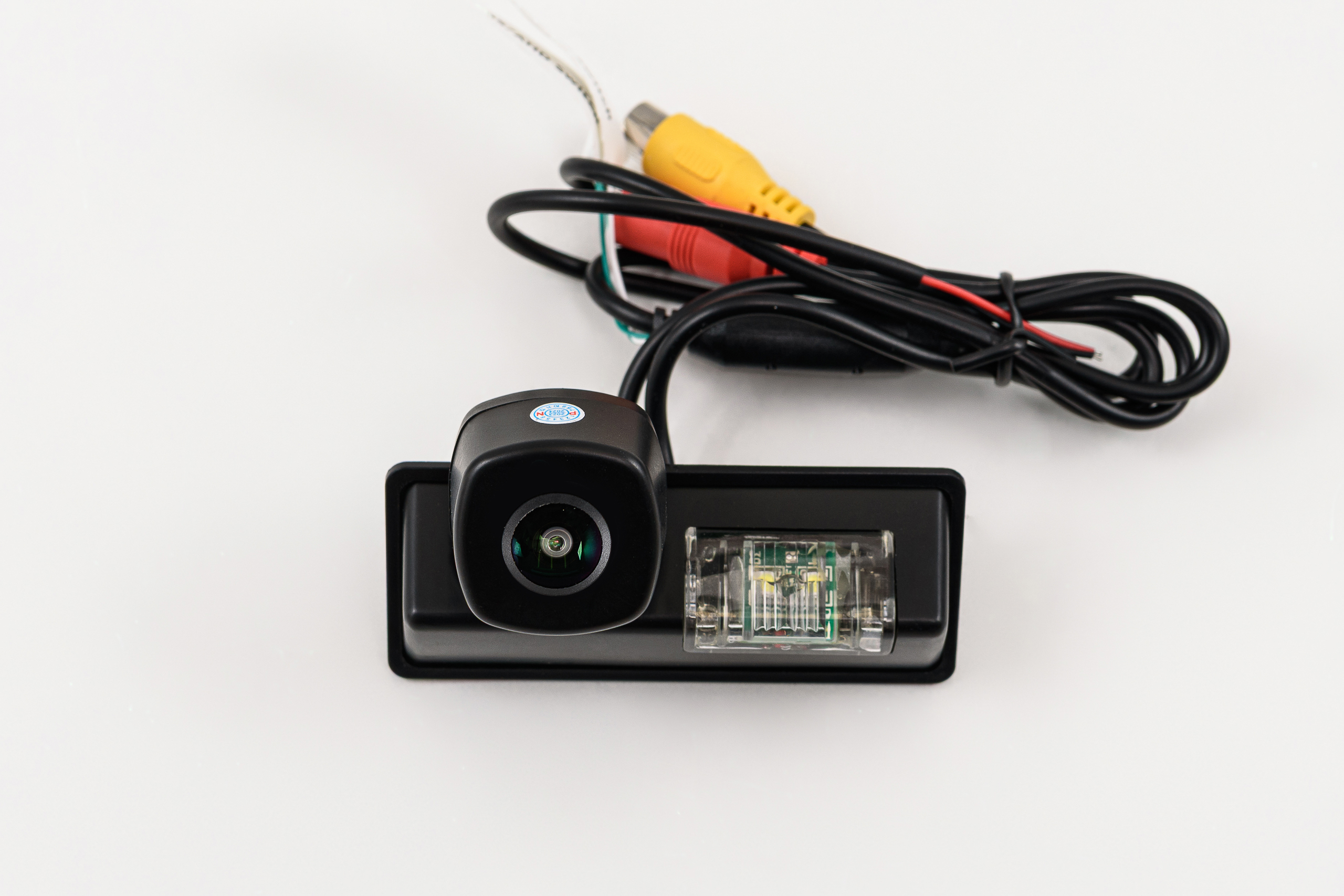 Kamera cofania FULL HD zintegrowana z lampką oświetlenia tablicy rejestracyjnej, z funkcją dynamicznych linii prowadzących, dedykowana dla NISSAN PULSAR 2014-2018. Montaż w miejscu lampki oświetlenia tablicy rejestracyjnej.