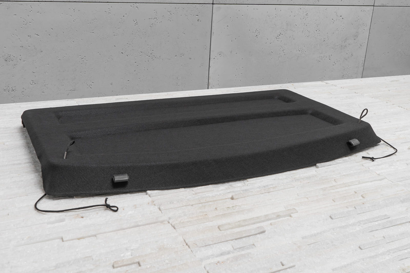 Akcesoryjna półka pozwala na zakrycie wnętrza bagażnika, tym samym zmniejszając ryzyko kradzieży przewożonych przedmiotów. Półka obita została wysokiej jakości materiałem o wysokiej odporności na uszkodzenia mechaniczne, działanie wysokich i niskich temperatur, a także na odbarwianie się od słońca. Produkt fabrycznie nowy, oryginalnie zapakowany.
