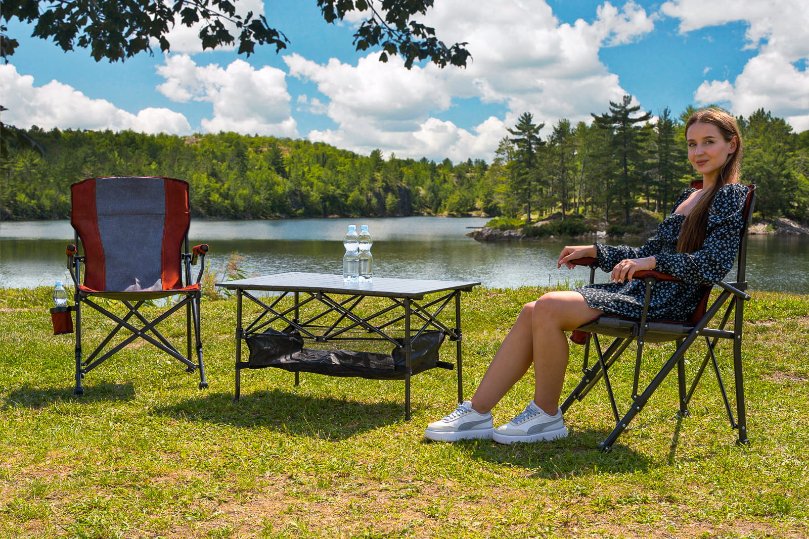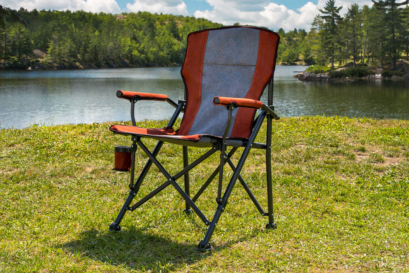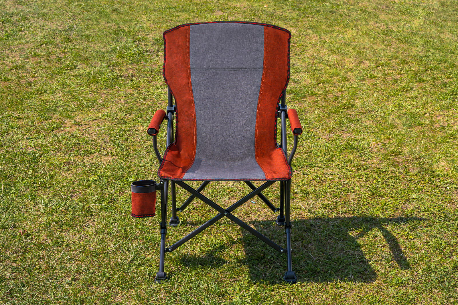 Składane, komfortowe krzesło turystyczne z uchwytem na butelkę.