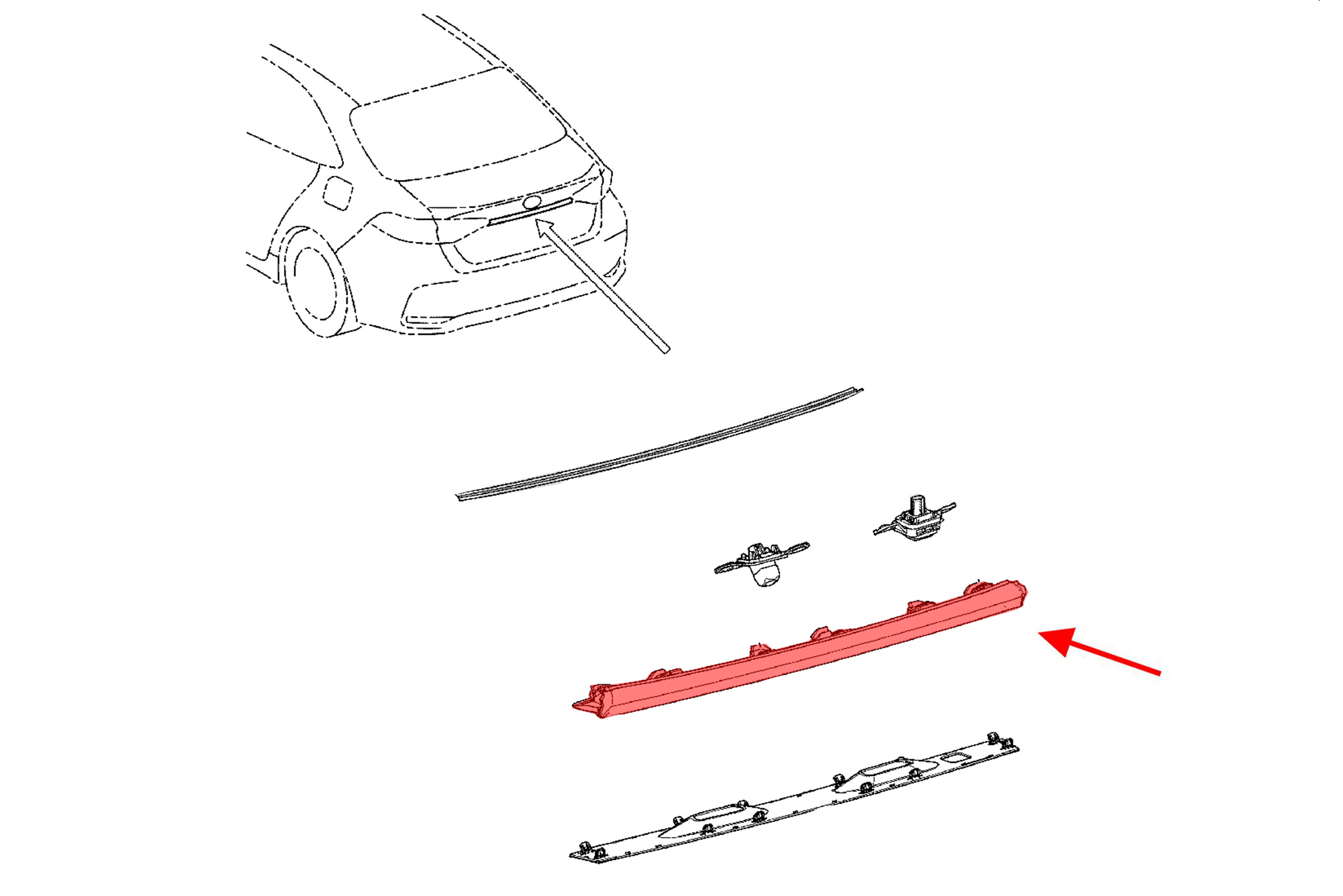 Chromowana listwa, blenda klapy tylnej, dla TOYOTA COROLLA XII (E21) 2019+ (w wersji SEDAN).