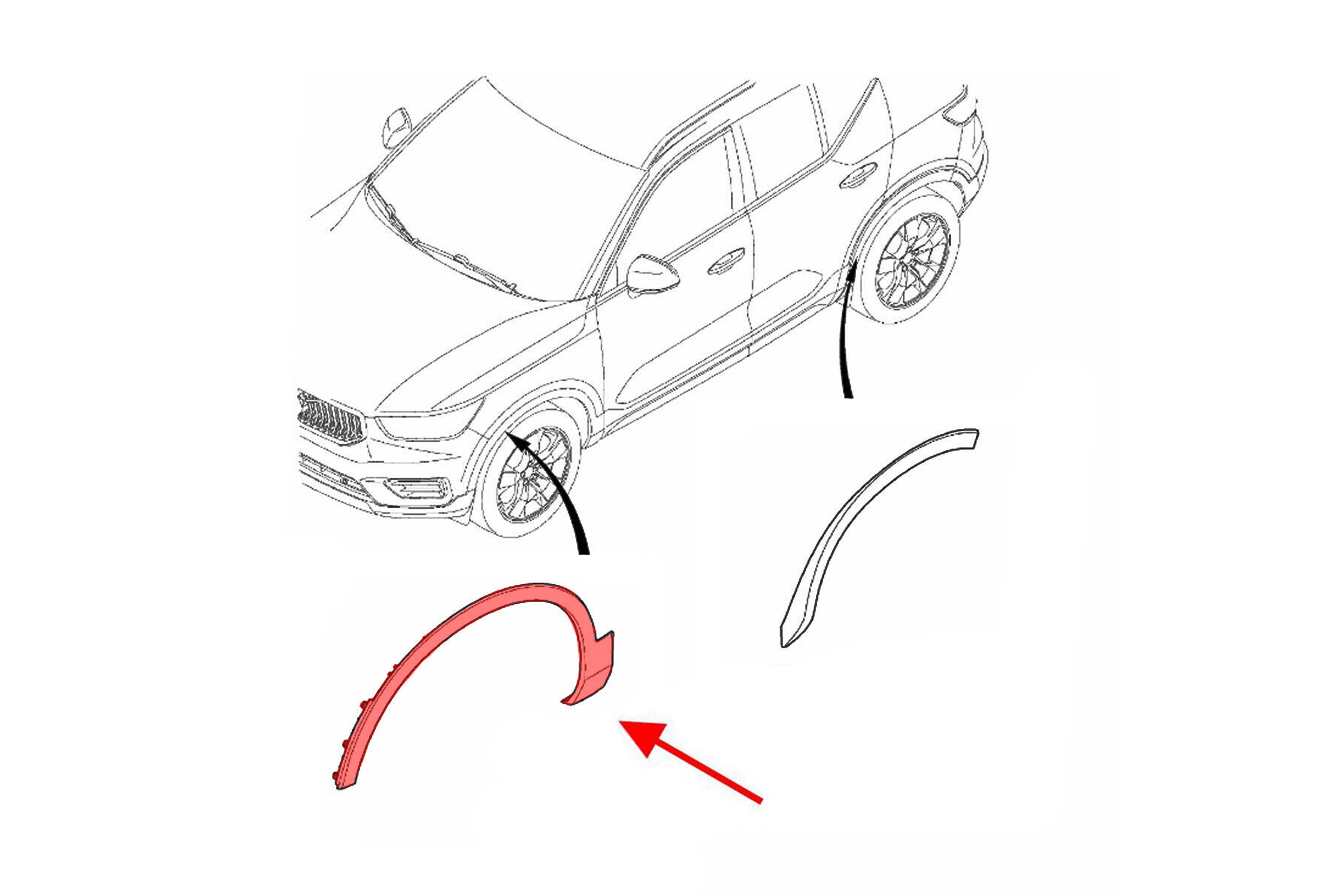 Listwa ochronna przedniego błotnika, lewa, dla VOLVO XC40 2017+.