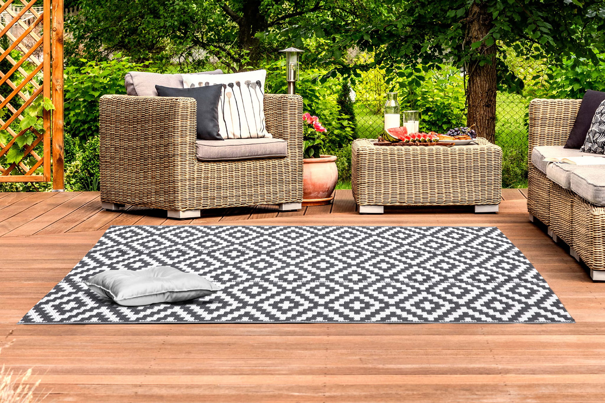 Materiał, z którego wykonana jest podłoga, jest odporny na warunki atmosferyczne i nasłonecznienie, dzięki czemu produkt jest nie tylko trwały, ale także zachowuje estetyczny wygląd przez długi czas użytkowania. Jest odporna na przedziurawienie nóżkami od krzeseł czy stolika. Nie niszczy się na słońcu, dzięki czemu nadaje się do stałego rozłożenia.